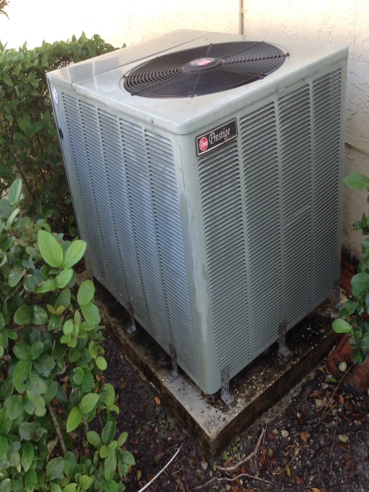 AC Maintenance Call. Perform routine maintenance per maintenance agreement on Rheem air conditioning split system.