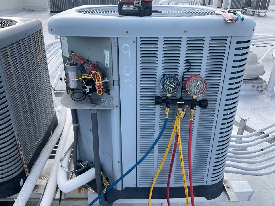 AC Maintenance Call. Perform routine maintenance per maintenance agreement on Ruud air conditioning split system.
