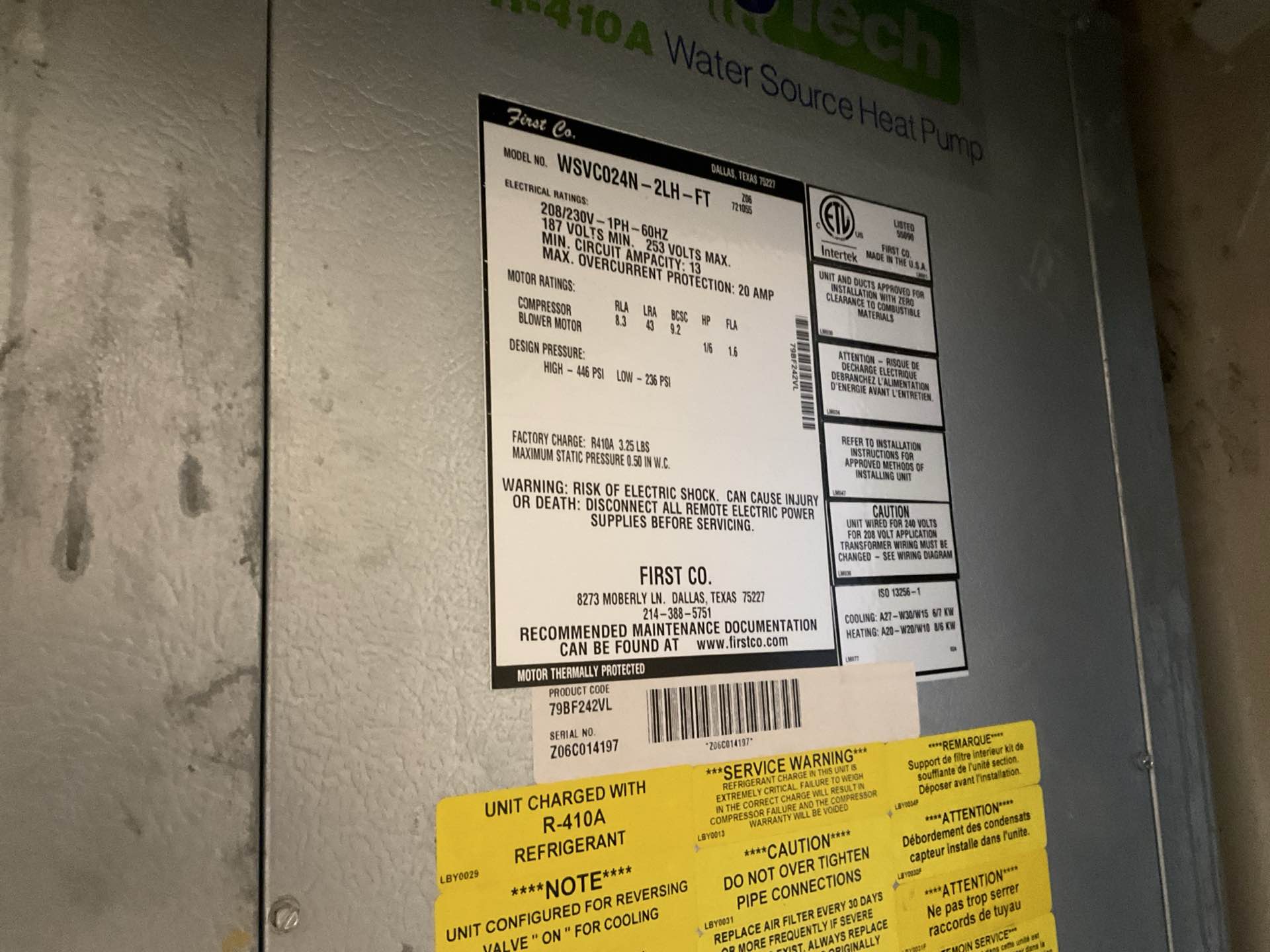 Pompano Beach, FL - AC Maintenance Call. Perform routine maintenance per maintenance agreement on Bosch water source air conditioning system.