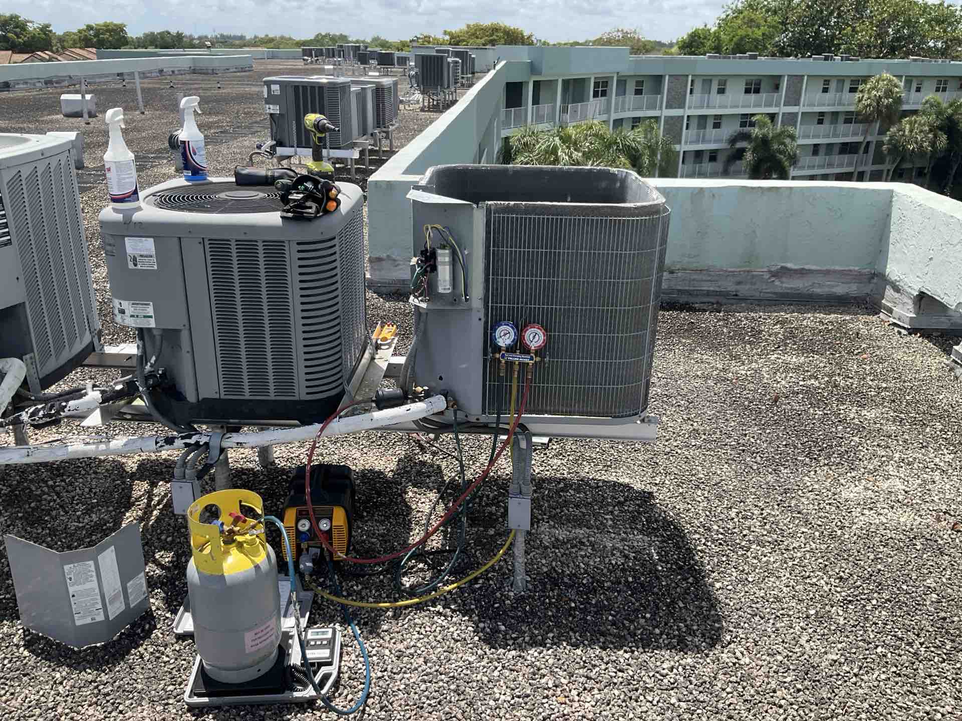Pompano Beach, FL - AC Repair Call unit not cooling. Evaluate system to find unit is low on refrigerant. Charge unit to factory specifications and unit is cooling at this time.