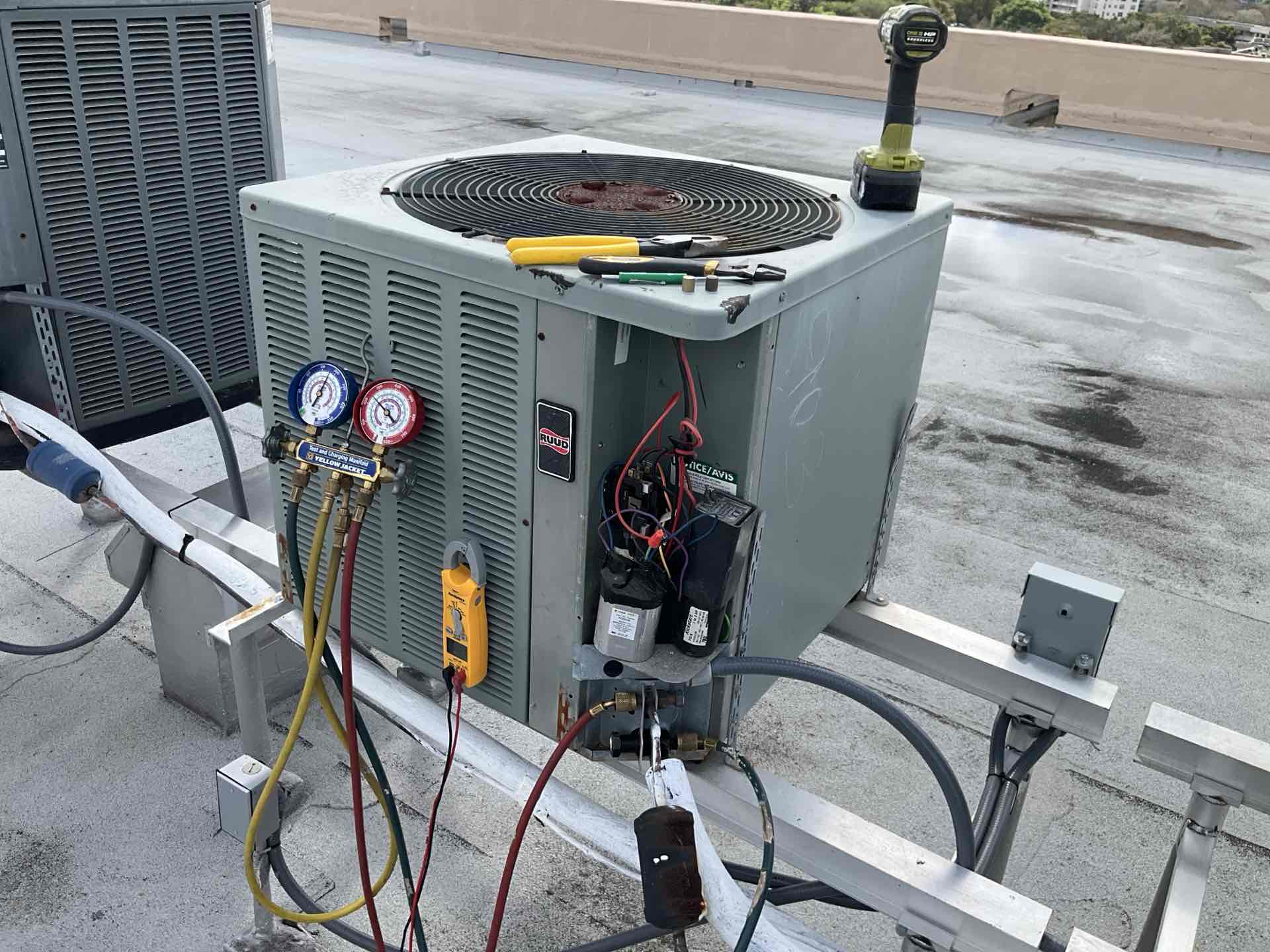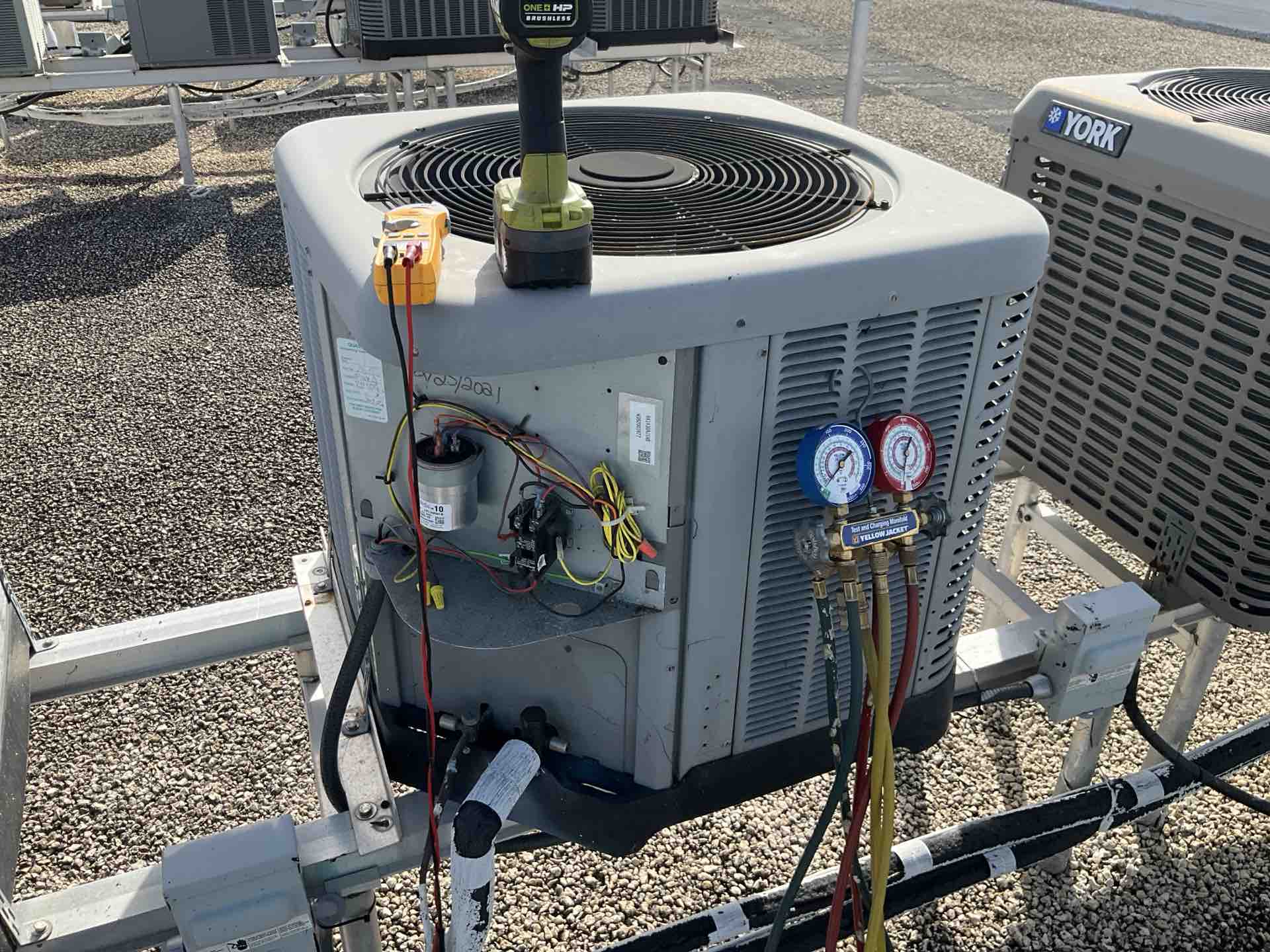 AC Service Call. Evaluate system to find compressor needed a hard start. Install hard start and unit is now cooling.
