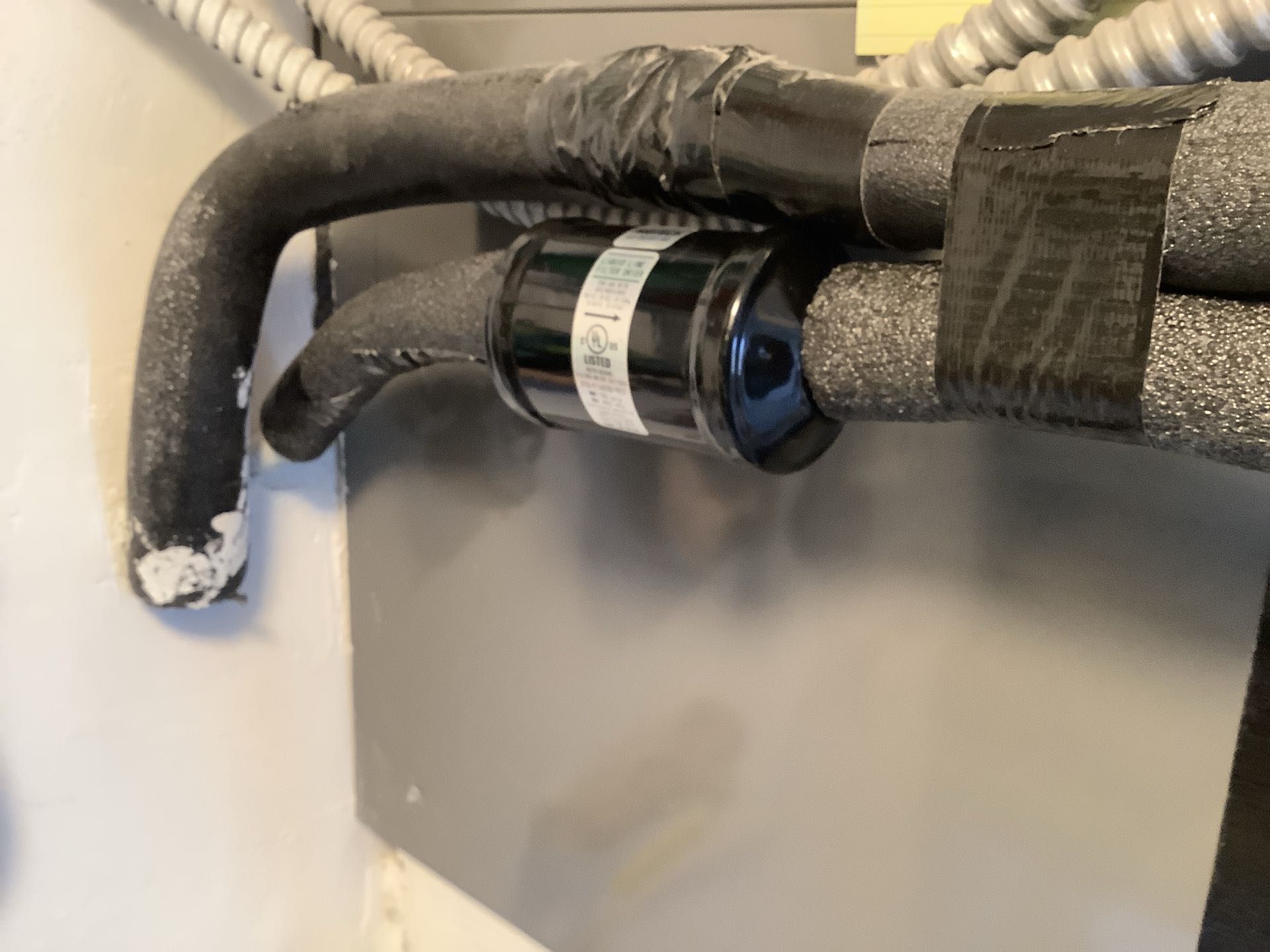 AC Service Repair. Replace liquid line drier and relocate inside.