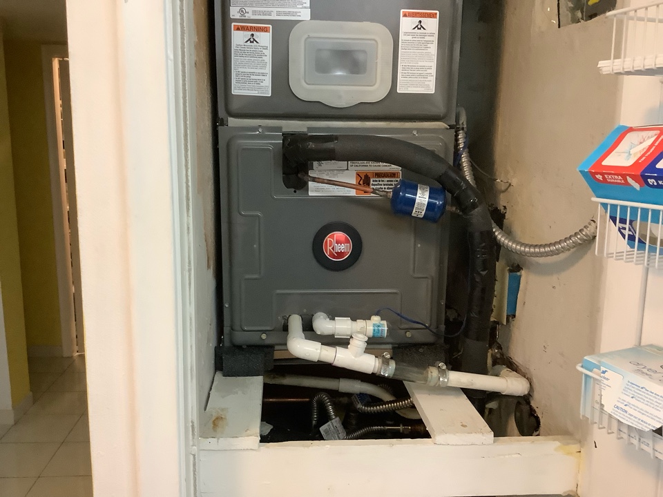 Pompano Beach, FL - AC Service Call unit leaking water. Evaluate system to find drain line was clogged. Cleared drain line and unit is now cooling properly and is no longer leaking water.