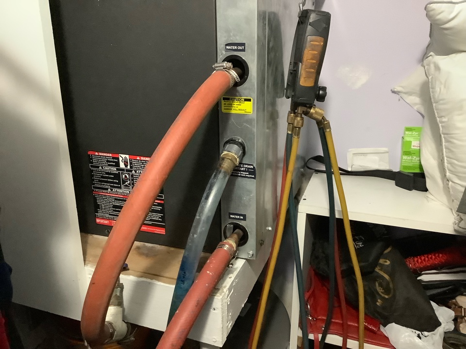 AC Service Call. Clear water filter for water source heat pump air conditioning system.