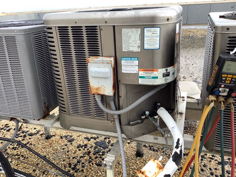 AC Maintenance Call. Perform routine maintenance on Rheem and First Company air conditioning split system.