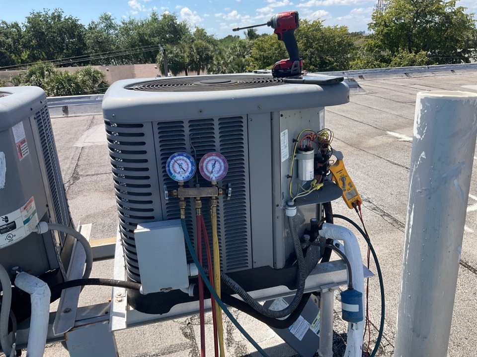 AC Maintenance Call. Perform routine maintenance per maintenance agreement on air conditioning package system.