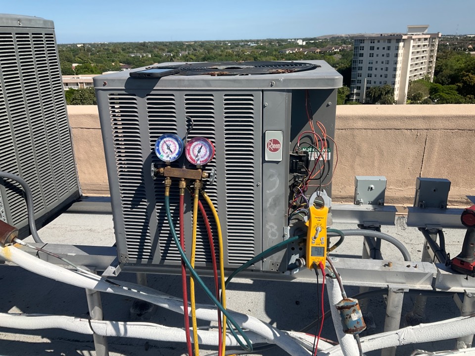 AC Maintenance Call. Perform routine maintenance per maintenance agreement on Rheem and First Company air conditioning split system.