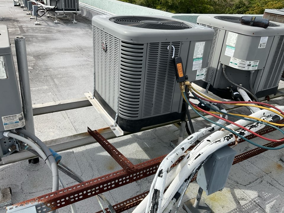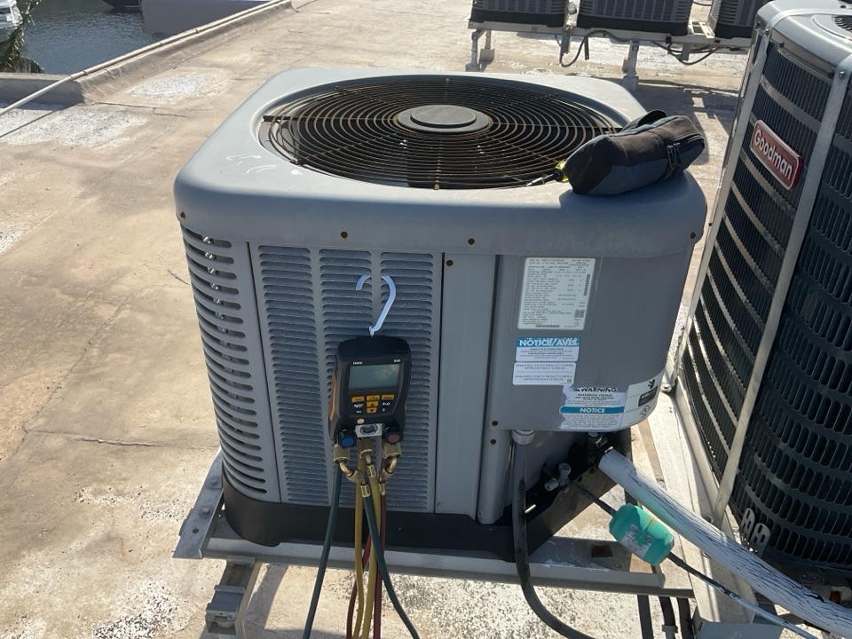AC Maintenance Call. Perform routine maintenance per maintenance agreement on Rheem and First Company air conditioning split system.