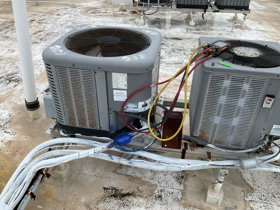 AC Maintenance Call. Perform routine maintenance per maintenance agreement on First Company and Rheem air conditioning split system.