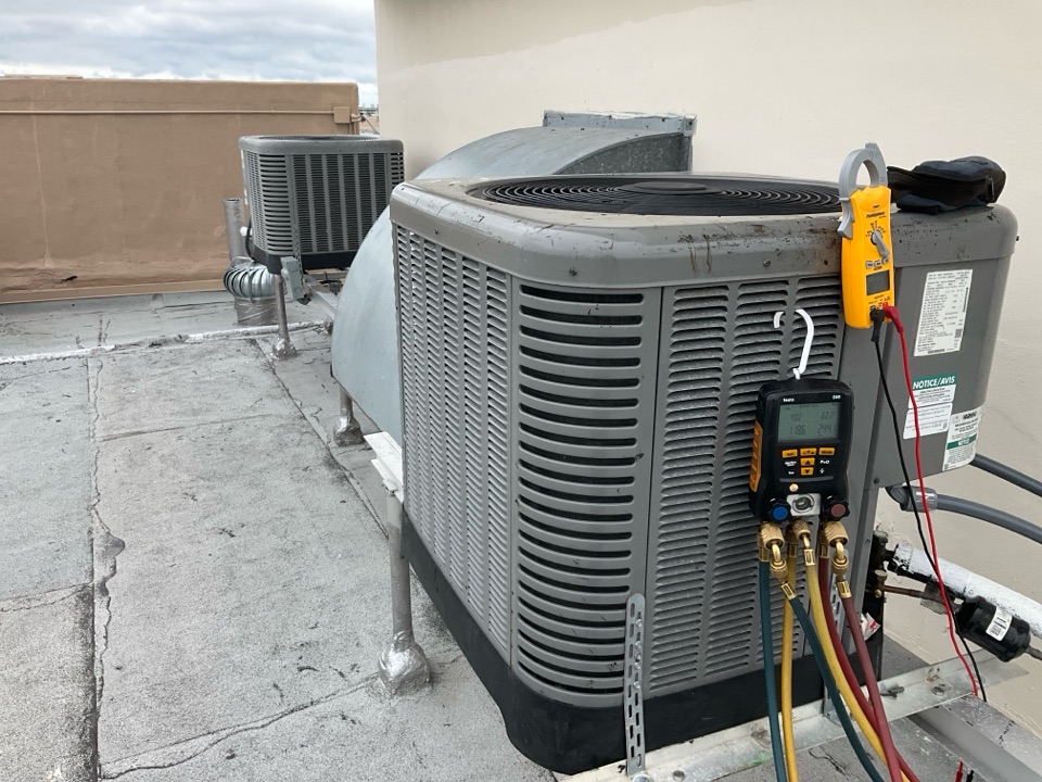 AC Maintenance Call. Perform routine maintenance per maintenance agreement on Rheem and First Company air conditioning split system.