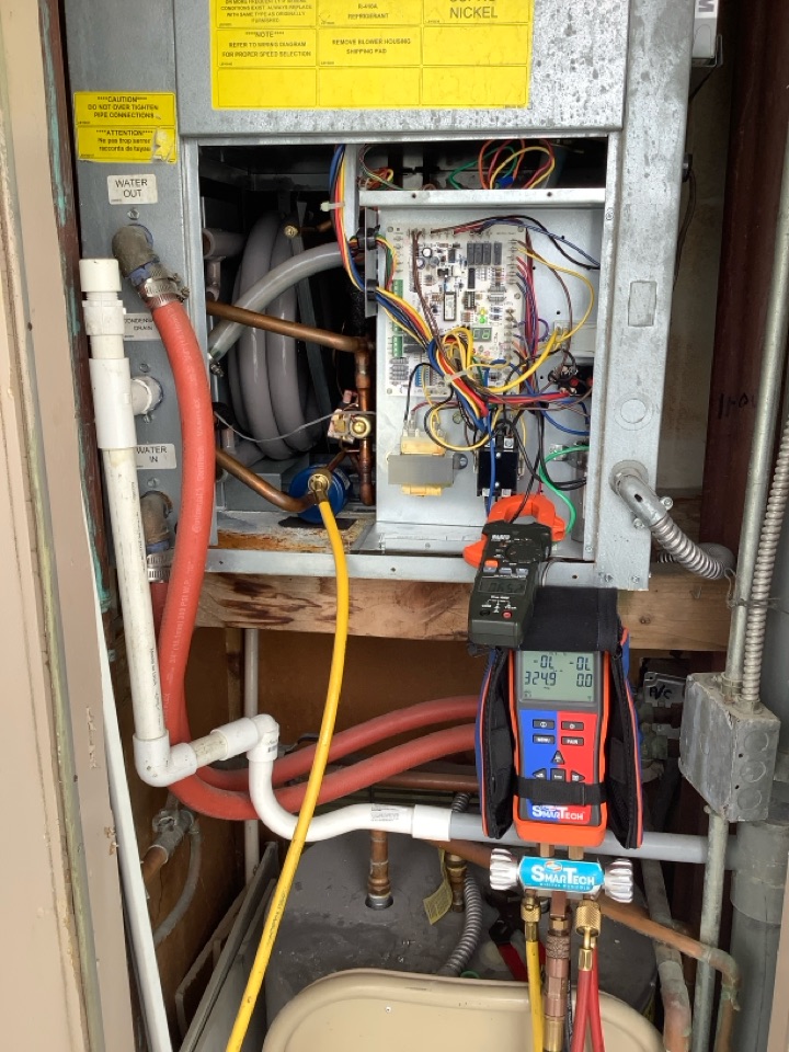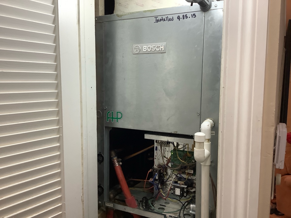 AC Maintenance Call. Perform routine maintenance per maintenance agreement on Bosch water source air conditioning system.