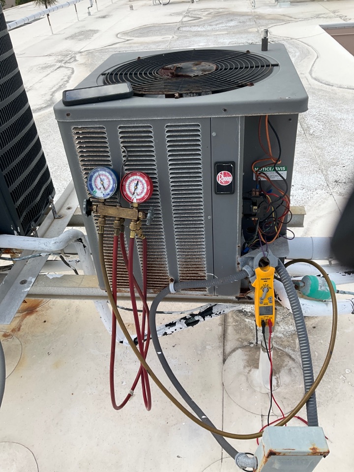 AC Maintenance Call. Perform routine maintenance per maintenance agreement on Ruud air conditioning split system.