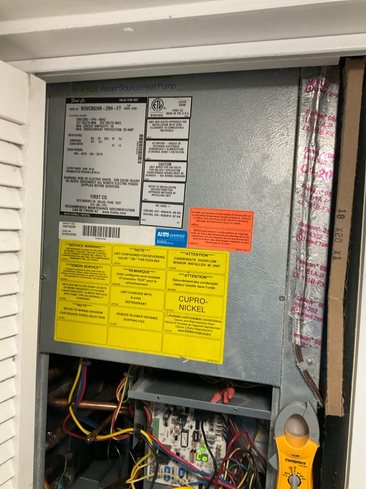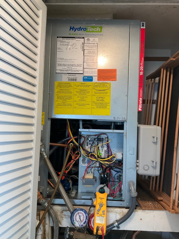 AC Maintenance Call. Perform routine maintenance per maintenance agreement on First Company Hydrotech water source air conditioning system.