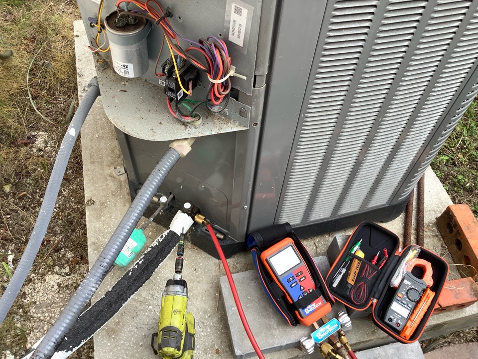 AC Maintenance Call. Perform routine maintenance per maintenance agreement on air conditioning split system. Recommend replacing refrigerant drier