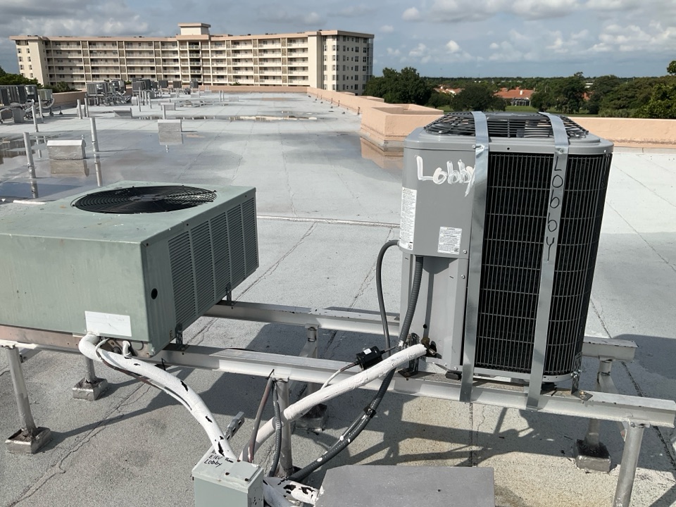 AC Maintenance Call. Perform routine maintenance per maintenance agreement on Ruud and First Company air conditioning split system.