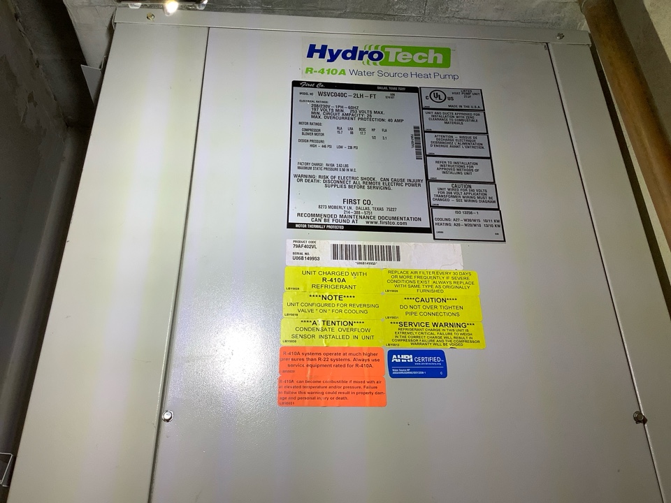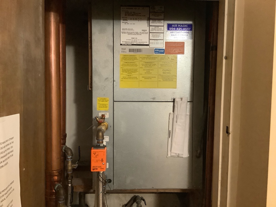 AC Maintenance Call. Perform routine maintenance per maintenance agreement on Florida Heat Pump water source air conditioning system.