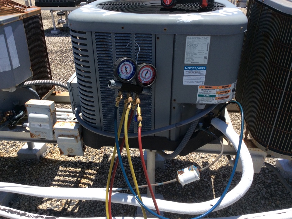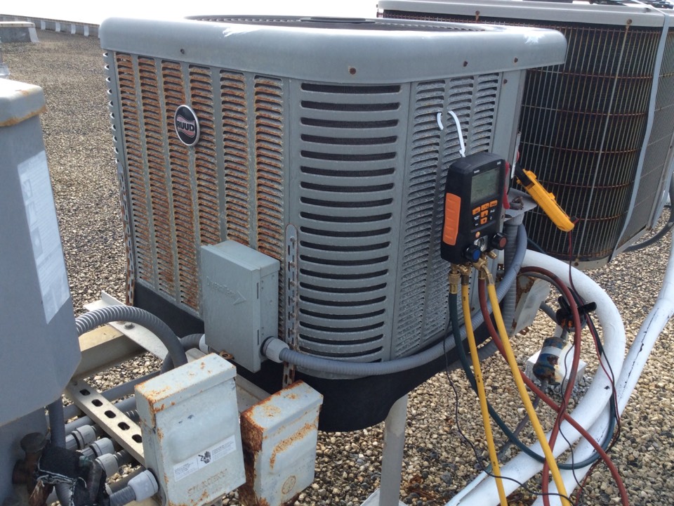 AC Maintenance Call. Perform routine maintenance on air conditioning First Company and Rheem split system.