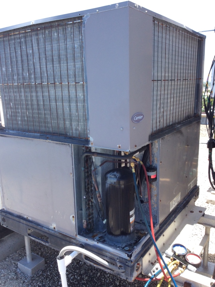AC Maintenance Call. Perform routine maintenance per maintenance agreement on Carrier air conditioning split system.