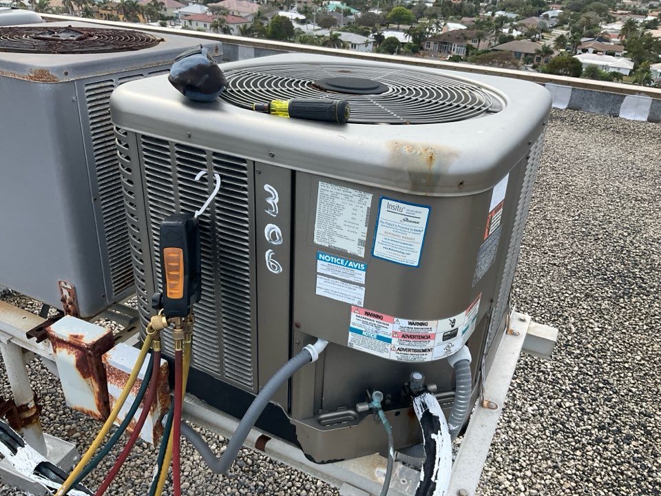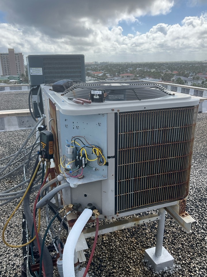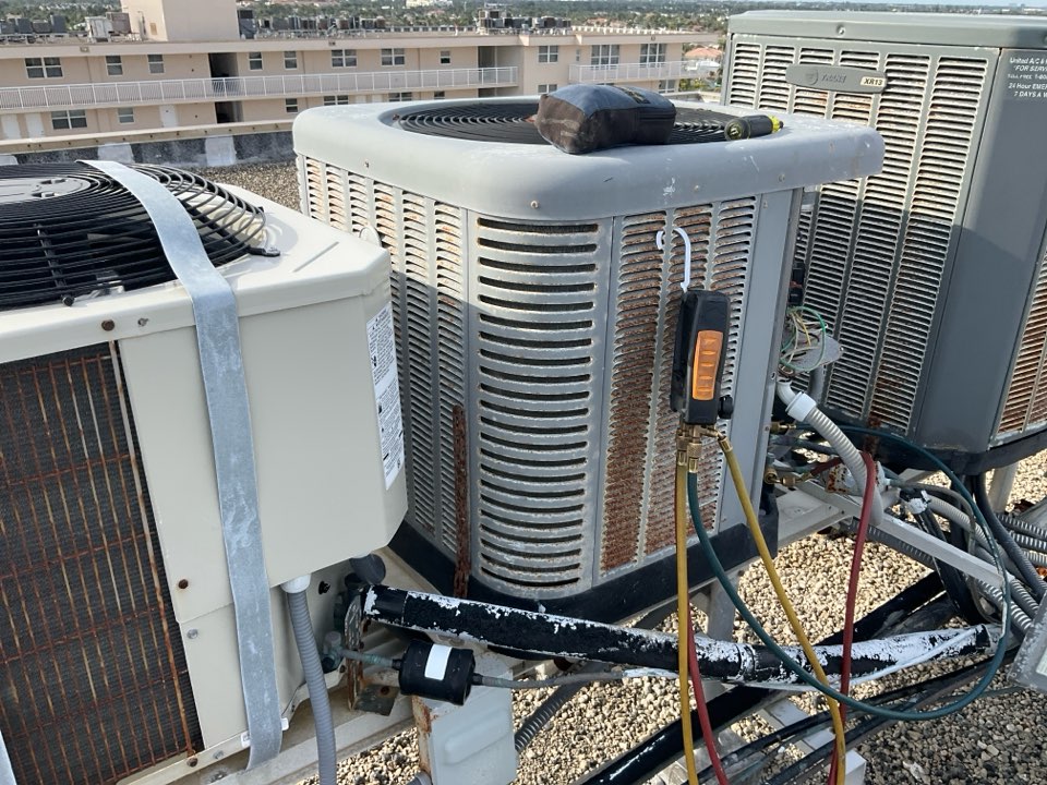 Hillsboro Beach, FL - AC Repair. Evaluate system to find leak in roof jack. Repair leak and charge to factory specifications.