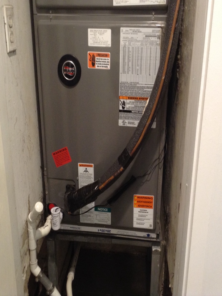 AC Maintenance Call. Perform routine maintenance on Ruud air conditioning split system.