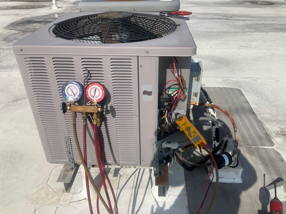 AC Maintenance Call. Perform routine maintenance per maintenance agreement on Ruud and First Company air conditioning split system.