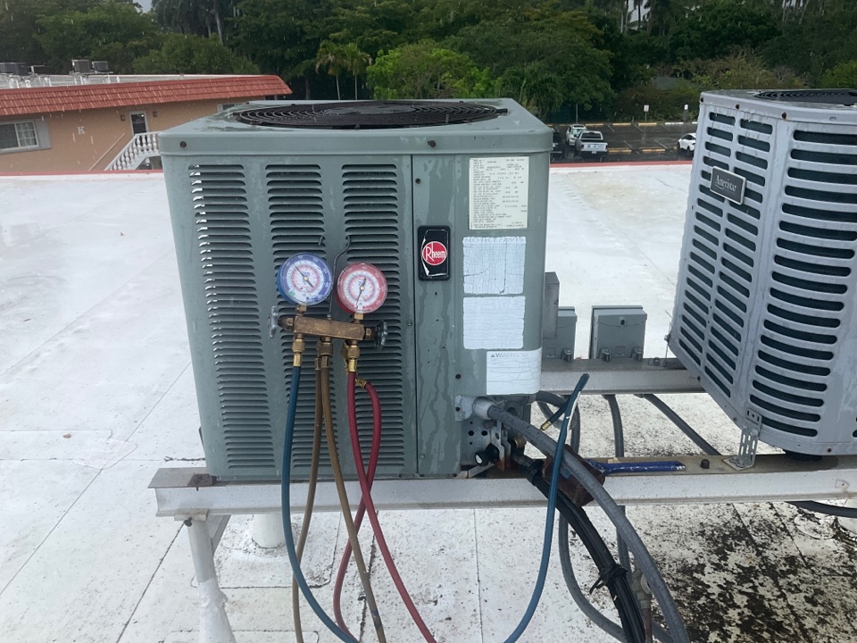 Wilton Manors, FL - AC Maintenance Call. Perform routine maintenance per maintenance agreement on Rheem and First Company  air conditioning split system.