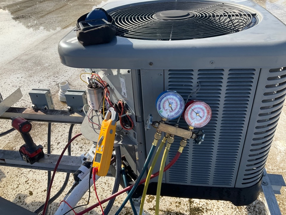 AC Maintenance Call. Perform routine maintenance per maintenance agreement on Suntherm and Rheem air conditioning split system.