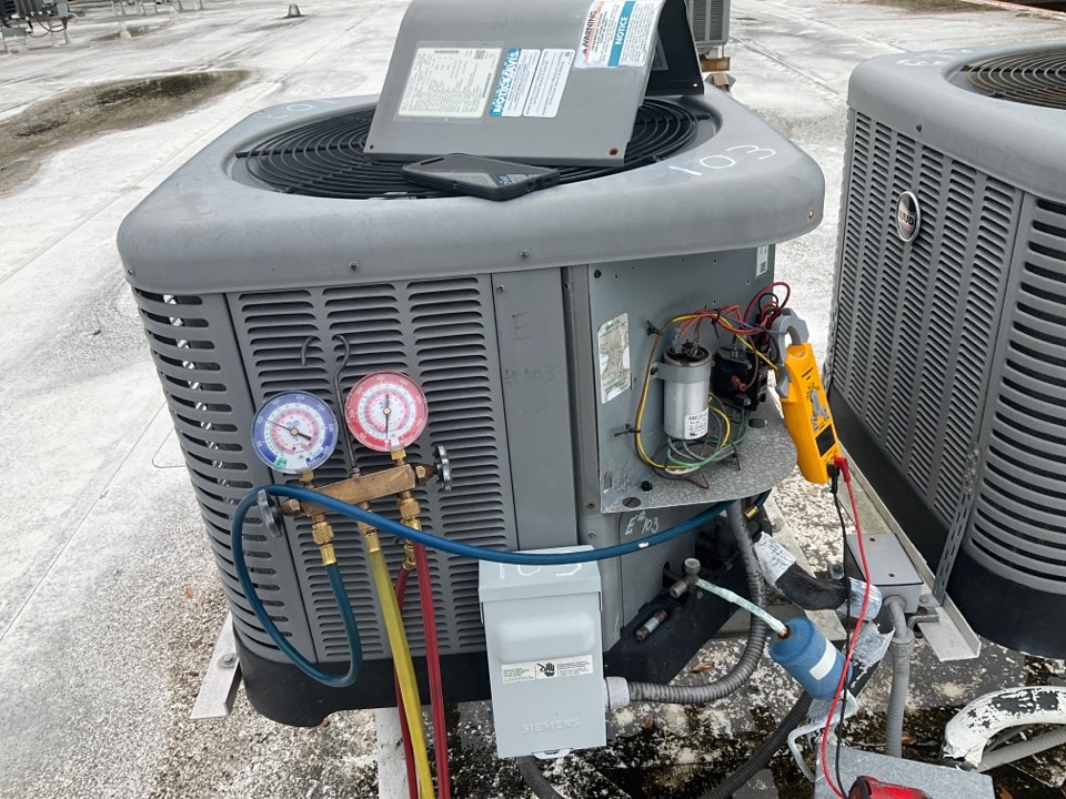 Wilton Manors, FL - AC Maintenance Call. Perform routine maintenance per maintenance agreement on Rheem and First Company air conditioning split system.