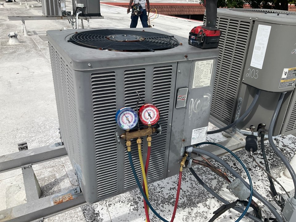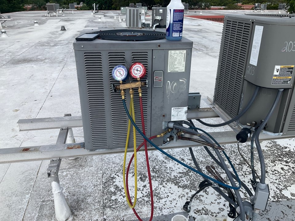 Wilton Manors, FL - AC Maintenance Call. Perform routine maintenance per maintenance agreement on Ruud and First Company air conditioning split system.