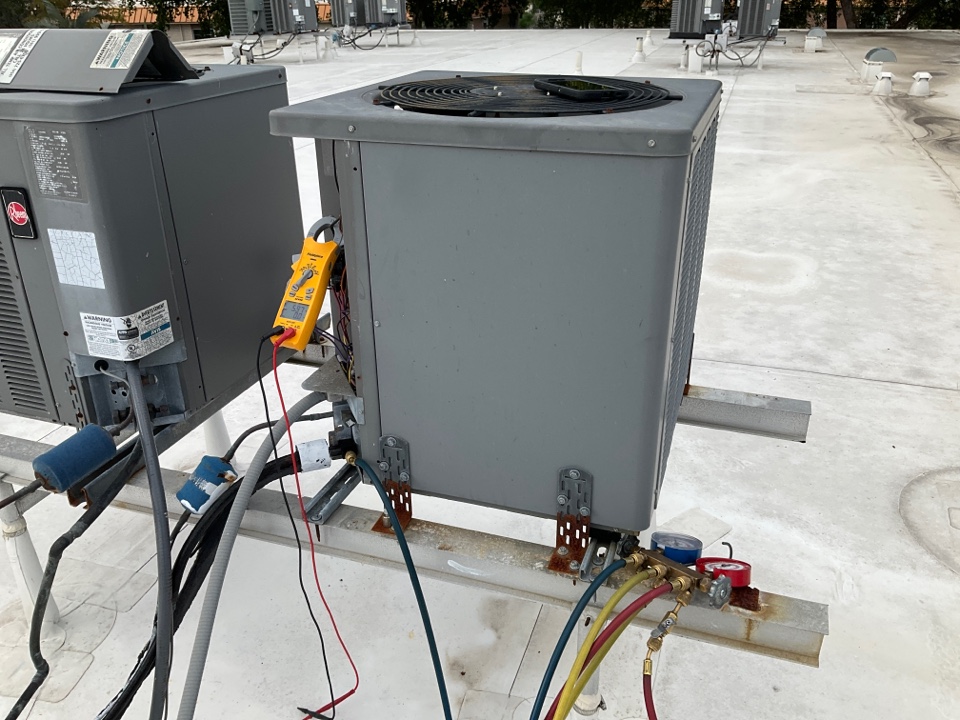 AC Maintenance Call. Perform routine maintenance per maintenance agreement on Rheem air conditioning split systems.