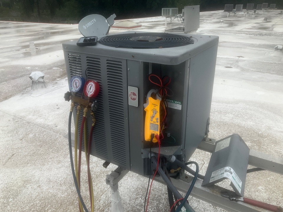 AC Maintenance Call. Perform routine maintenance per maintenance agreement on Rheem air conditioning split system.
