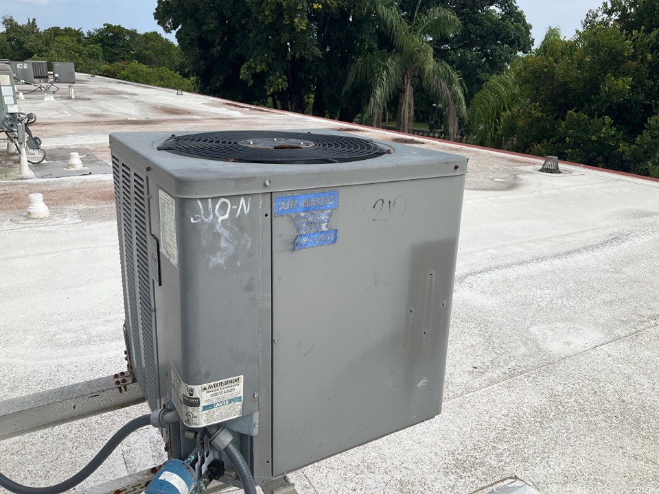 AC Maintenance Call. Perform routine maintenance per maintenance agreement on First Company and Rheem ton air conditioning split system.