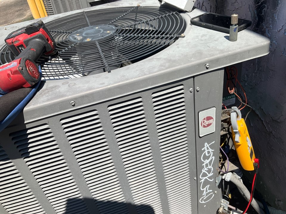 AC Maintenance Call. Perform routine maintenance per maintenance agreement on Rheem air conditioning split system.
