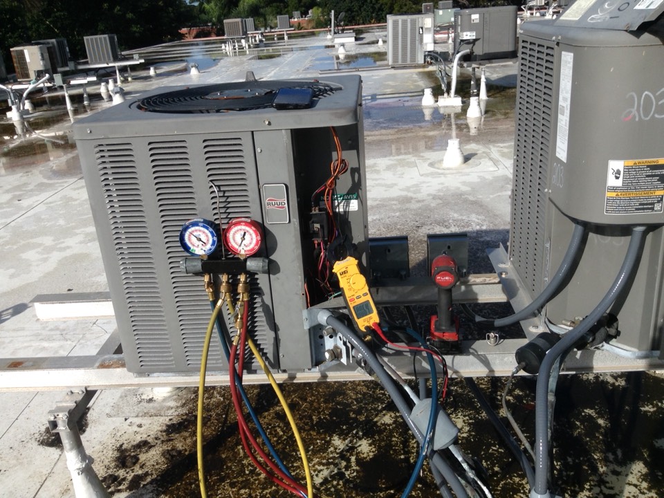 Wilton Manors, FL - AC Maintenance Call. Perform routine maintenance per maintenance agreement on Ruud and First Company air conditioning split system.