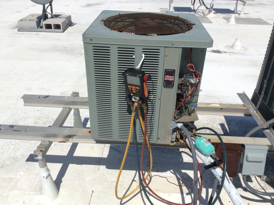 AC Maintenance Call. Perform routine maintenance on Rheem air conditioning system.