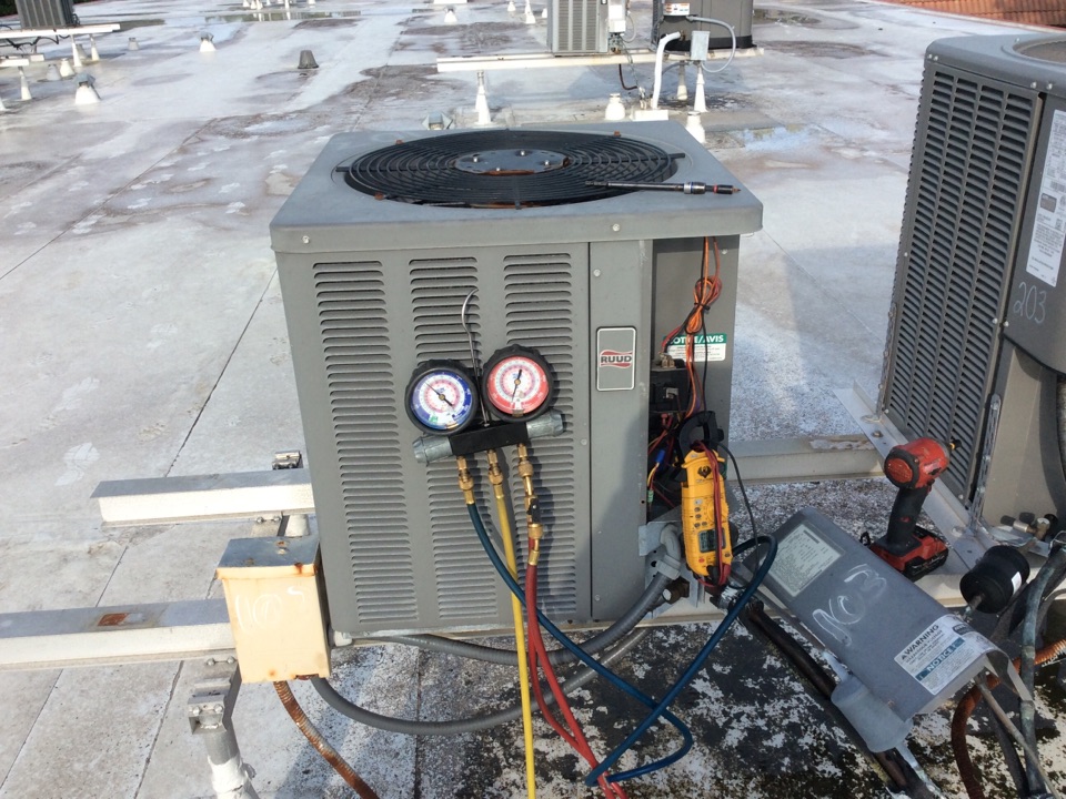 Wilton Manors, FL - AC Maintenance Call. Perform routine maintenance per maintenance agreement on Ruud and Suntherm air conditioning split system.