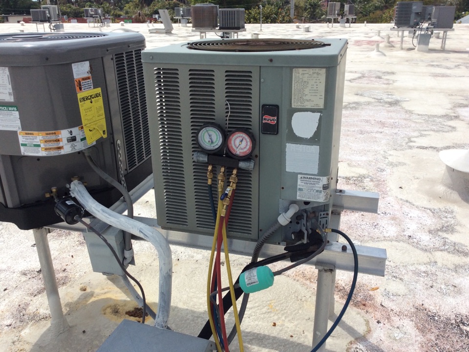 AC Maintenance Call. Perform routine maintenance per maintenance agreement on Ruud and Suntherm air conditioning split system.