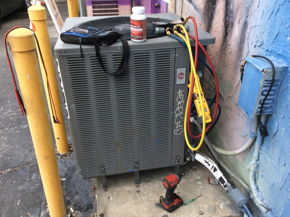AC Maintenance Call. Perform routine maintenance on Rheem air conditioning split system.