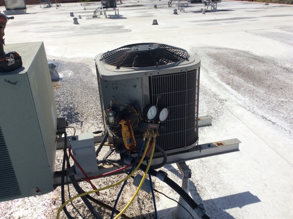 AC Service Call unit not cooling. Evaluate system to find unit is low on refrigerant.