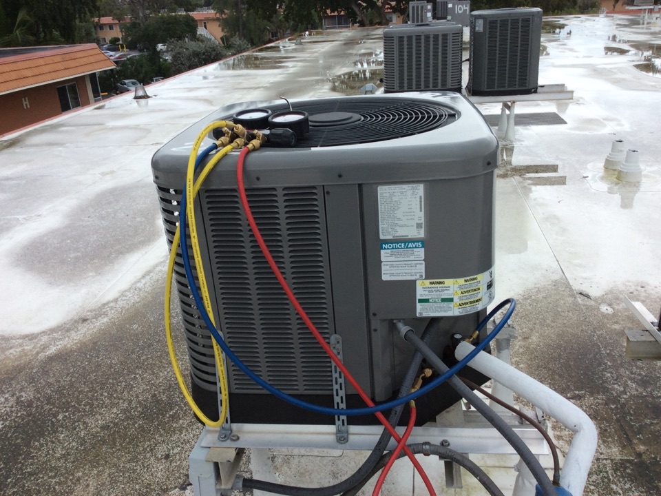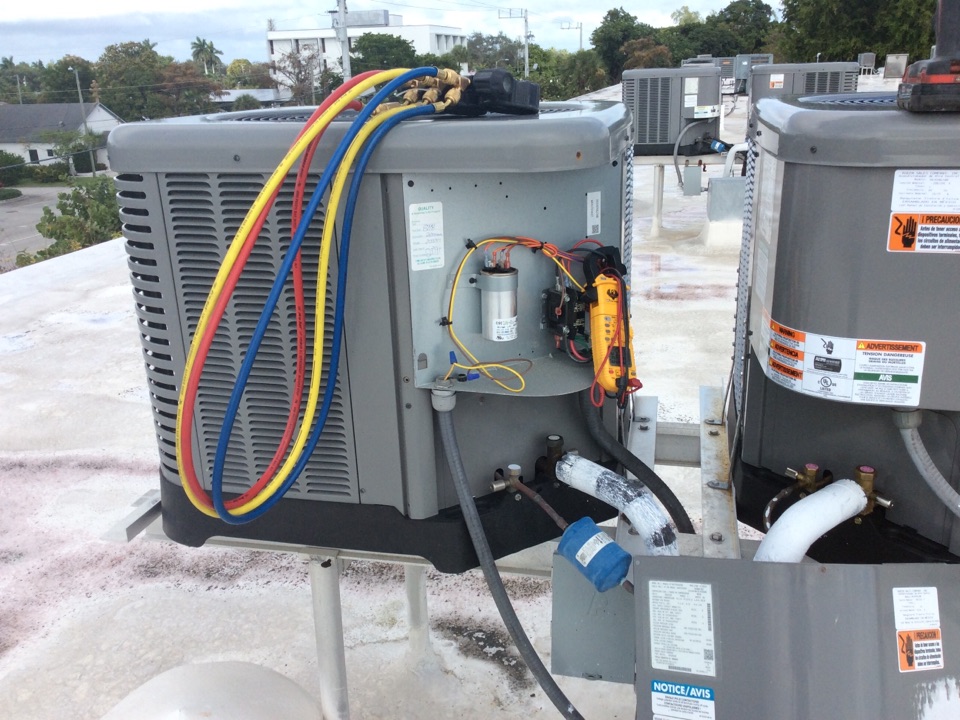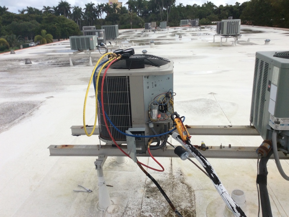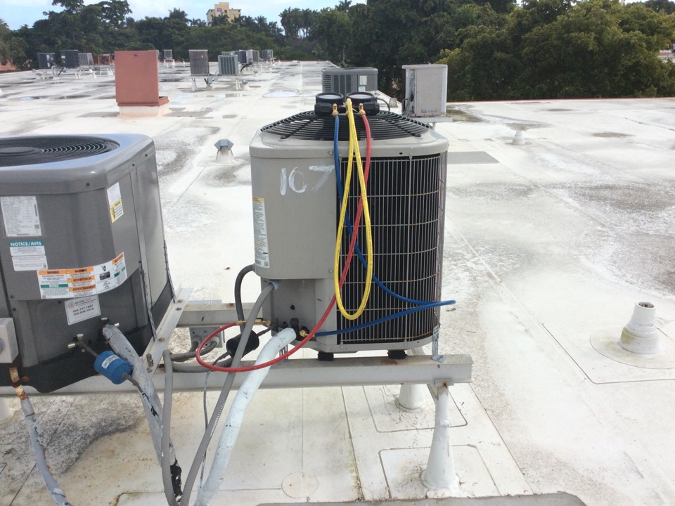 Wilton Manors, FL - AC Maintenance Call. Perform routine maintenance per maintenance agreement on air conditioning split system. Unit was low on refrigerant. Charged system to factory specifications.